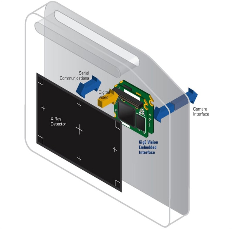Off-the-shelf embedded solutions, including small footprint hardware and software solutions, make it straightforward to design GigE Vision-compliant static and dynamic FPDs. Software solutions are also available to convert an existing sensor device into a “virtual GigE Vision” transmitter. Interfaces designed for FPD applications can help improve system reliability by storing a temporary history of images, avoiding the need to retake an x-ray in the case of a power interruption or user error.
