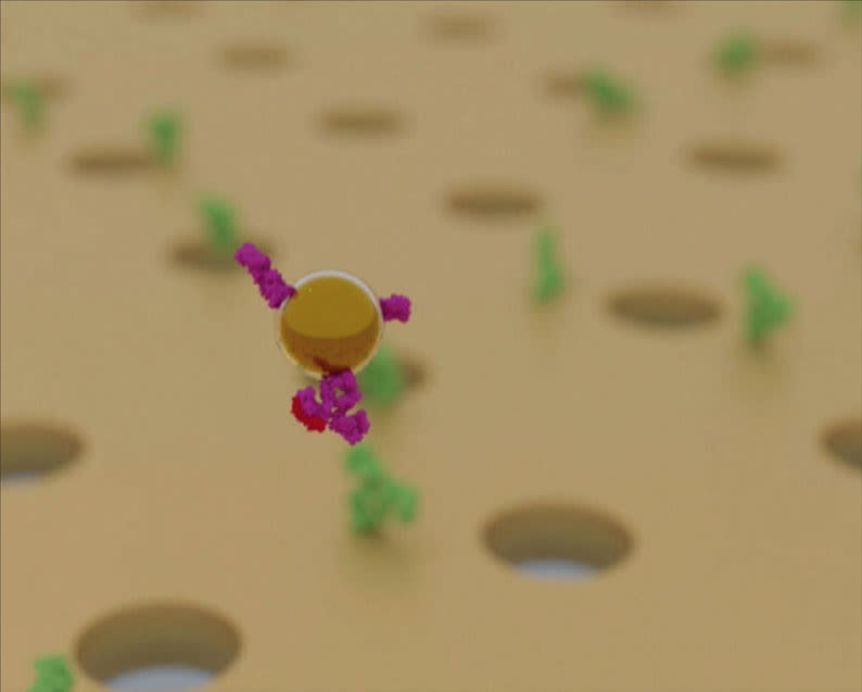 The device employs an optical metasurface — in this case a thin gold sheet containing arrays of billions of nanoholes. The metasurface concentrates light around the nanoholes so as to allow for exceptionally precise biomarker detection. With this type of metasurface, the researchers can detect sepsis biomarkers in a blood sample with nothing more than a simple LED and a standard CMOS camera.