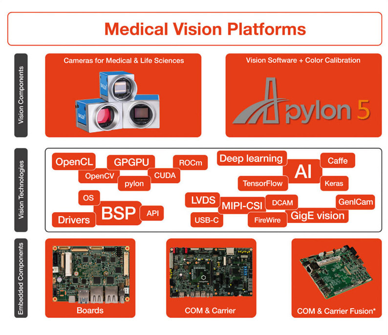 Ultimately, after all these decisions have been taken, there is still the entire inner electronics to be developed, designed into a suitable housing and provided with the appropriate board support package for the OS image, so that the OEM’s application software can do what it is supposed to do: deliver perfect images and a management system that makes diagnosis much more efficient. Since these are complex challenges, embedded vision expert Basler and embedded computing expert congatec, for example, have entered into a partnership to be able to support OEMs throughout their engineering processes, from first requirement engineering to series production, more comprehensively as a one-stop platform provider.