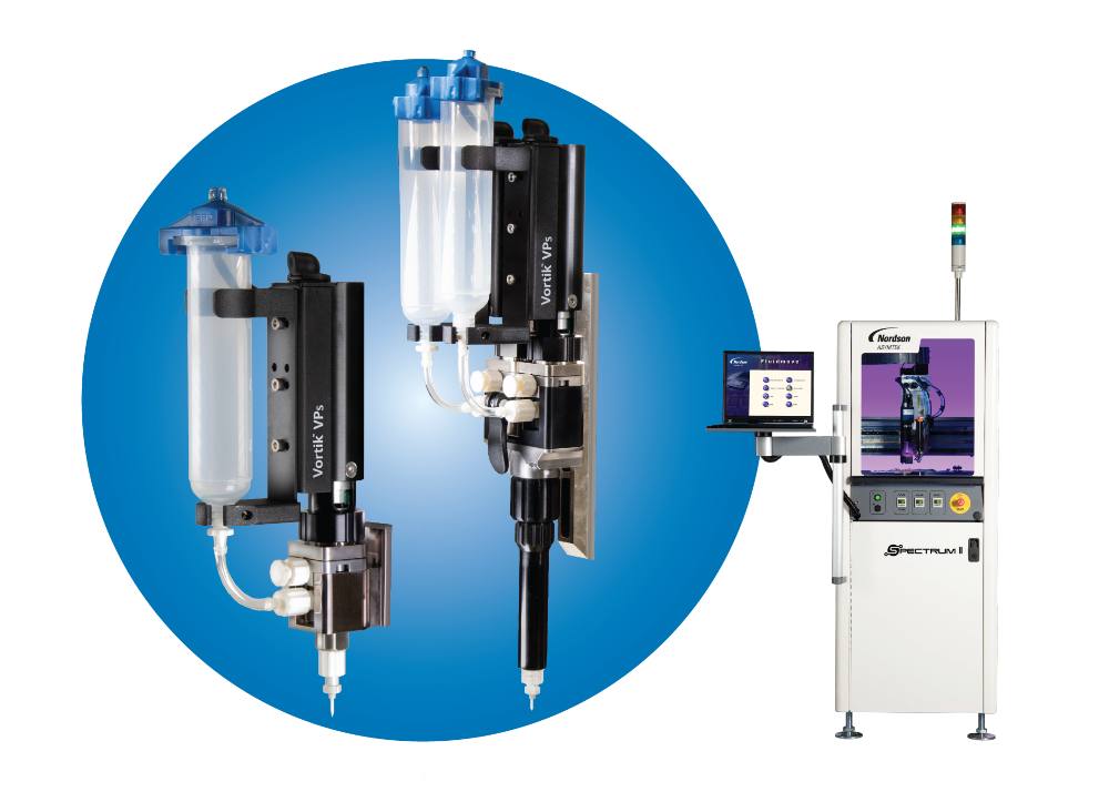 AYSMTEK, Carlsbad, CA, offers a family of progressive cavity pumps. The Vortik® pumps are fully integrated with dispensing systems and software to deliver repeatable volumetric accuracy without interruption. The pumps come in three sizes for small volume (VPs), medium volume (VPm), and large volume (VPg) dispensing of one- and two-component materials. Each size features two models with differing rotor sizes that dispense a specific volume per revolution.
