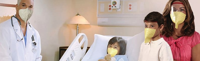 A gentle adhesive seal to hold the respirator to the face, eliminating the need for tight elastic bands to secure the device against the face.