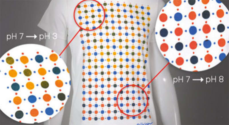Researchers have developed biomaterial-based inks that respond to and quantify chemicals released from the body (e.g., in sweat and potentially other biofluids) or in the surrounding environment by changing color. The inks can be screen printed onto textiles such as clothes, shoes, or even face masks in complex patterns and at high resolution, providing a detailed map of human response or exposure.