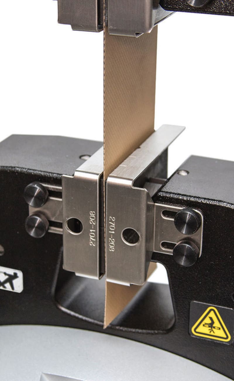 Respirator masks require all of the same tests as single-use medical/surgical masks with one exception. An additional test is required to evaluate the minimum force needed to separate the respirator valve from the mask face. This step is important as a quality control check and can be accomplished by using a standard side-acting grip on the base of the system and a custom-made hook fixture attached to the load cell. The pin and clevis modular design of a universal test system makes swapping fixturing simple and quick to do.