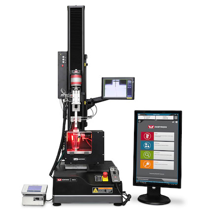 The fixture works with the 6800 series universal testing systems. Using Bluehill® Universal software, the system can measure the safety cap removal force, syringe activation force and displacement, total injection time, injection mass, and lock-out force of the needle shield in a single test method. A modular design makes it easy to integrate additional equipment such as an optical micrometer to measure needle length during injection, an audio sensor to capture an audible button click, a device for last drop blow off, and more.