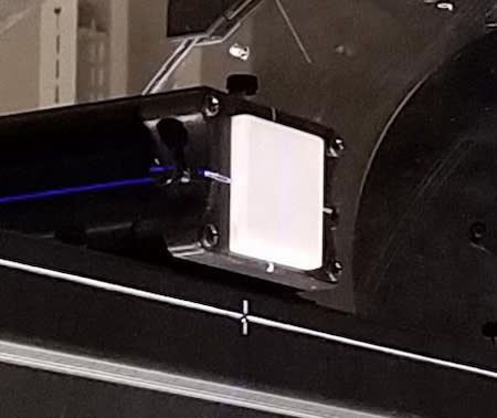 A proton beam range verification tool is available from Logo Systems International, Scotts Valley, CA, that allows direct visualization of the proton beam path using a transparent block of scintillator. The Ranger-300 enables up to 30 cm of the beam path to be visualized, giving a detailed view at the Bragg peak along with proximal and distal locations of interest. The verification tool has a continuous optical view of the beam with no discontinuities. In addition, the scintillator is close to tissue equivalence and has no electrodes or other metallic components that may distort measurements.
