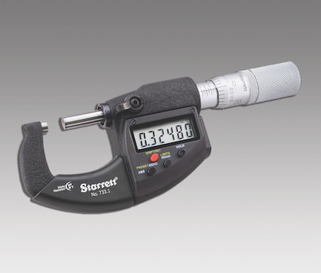 Electronic digital micrometers from L.S. Starrett, Athol, MA, offer improved ergonomics, functionality, and productivity. The electronic micrometers range from the No. 733.1 outside micrometers to a wide array of application-specific models. To withstand the harshest shop elements including coolant, water, chips, dust, and dirt while retaining tool integrity, the micrometers include IP67 level protection on sizes 0–4 in. (0–100 mm) and on various application-specific models. An ergonomic, insulated frame design on the No. 733.1 0-1 in. outside micrometer is designed for comfort and ease of use, providing an optimal user measuring experience.