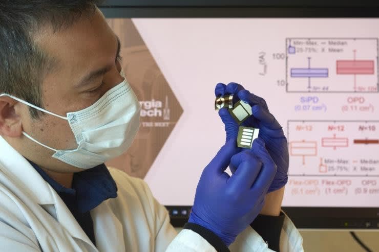 One application for the new devices is in pulse oximeters now placed on fingers to measure heart rate and blood oxygen levels. Organic photodiodes may allow multiple devices to be placed on the body and operate with 10 times less light than conventional devices. This could enable wearable health monitors to produce improved physiological information and continuous monitoring without frequent battery changes.