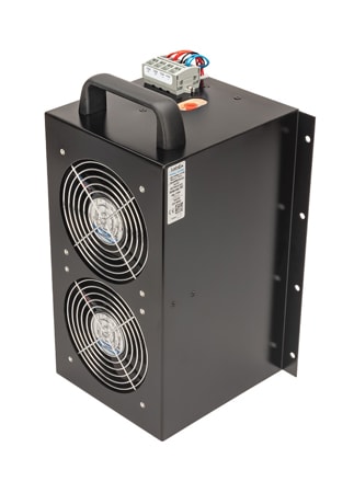 Laird Thermal Systems, Durham, NC, offers a high-capacity liquid-to-air thermoelectric cooler assembly with 400 W of cooling power to refrigerate medium to large medical diagnostic chambers. Designed to control the temperature of a liquid circulating loop, the SuperCool Series SLA-400 provides the highest cooling capacity in the industry for its size. Measuring just 17.4 × 17.4 × 29.1 cm, the compact thermoelectric cooler assembly utilizes the Peltier effect to cool well below ambient temperatures. Liquid-to-air units offer options for space-constrained applications by allowing the cooling unit to be moved to a location where space is available.