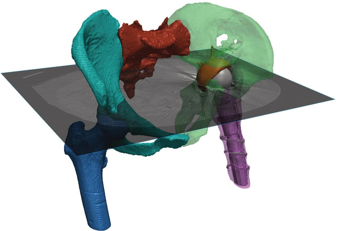 Revision surgeries are much more complex than the primary surgeries and as a result, planning these surgeries requires a detailed understanding of an individual subject’s anatomy and how it interacts with an implant. To model the latter, 3D imaging such as computed tomography (CT) can be used to create a realistic representation of anatomical structures.