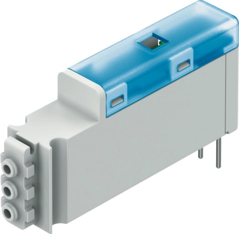 A new valve for high-density small footprint manifolds or for single-valve duty is available from Festo, Islandia, NY. The miniature VOVK valve is ideal for in vitro diagnostics, point-of-care devices, and more. At 6 mm wide, the valve delivers a wide pressure range, including vacuum, fast switching time, and low power consumption. The valves can actuate multiple diaphragms on a lab-on-a-chip cartridge that contains the analysis process and reagents. The valves can control the flow of liquid in dialysis machines and can serve in pilot valve applications.