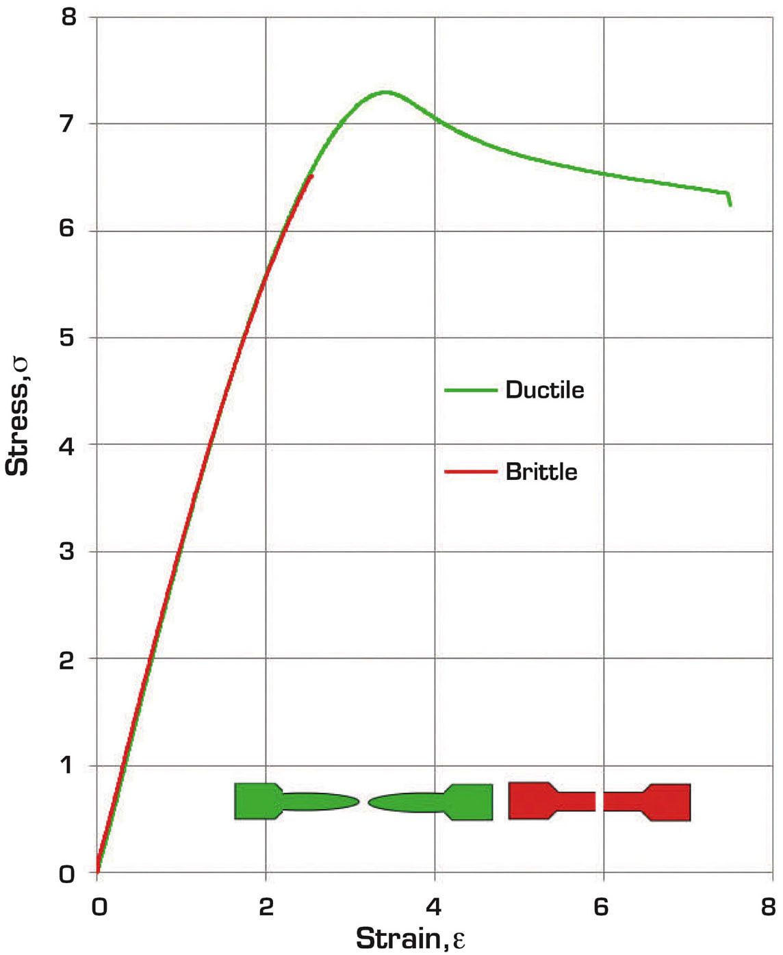 Measuring Mechanical Properties. Mechanical strength of medical plastics can be expressed using tensile, compressive, flexural, impact, fatigue, weathering, and other similar metrics, depending on the targeted application. For ESCR evaluation of medical plastics, the mechanical test type studied is varied, e.g., tensile or impact or flexural, etc.3-6 However, the property retention upon chemical agent exposure to establish compatibility is an industry-wide practice. The stress-strain curves as part of tensile testing provide the ductile or brittle response of the material along with modulus and elongation at break properties (see Figure 2). For tensile testing, ASTM-D618 lists tensile bar dimensions and tolerances for standard tensile specimens with regard to size and geometry. Moreover, the test parameters such as extensometer capacity and crosshead speed for testing require rigorous attention specific to a material tested. 8ASTM D543-14 provides guidelines for chemical exposure under strained environments and evaluating tensile property retention.9