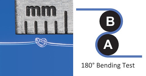 Toray, New York, NY, has improved the bend resilience of its plastic optic fiber. The Raytela® plastic optic fiber has been extensively tested in a tightly controlled, 77 °F environment deploying a 2-point bending test comprised of 10-mm-diameter stainless-steel rods and 175-g weighted pulls on both ends of the fiber. Using a 1-m sample length fiber, the automated testing machine conducted a series of repetitive bending tests of full 180° bends. The test series of numerous cables resulted in a measured average of 34,500 bends before breakage, a significant accomplishment and a durability feature ideal for endoscopy illumination and ophthalmic lighting equipment.