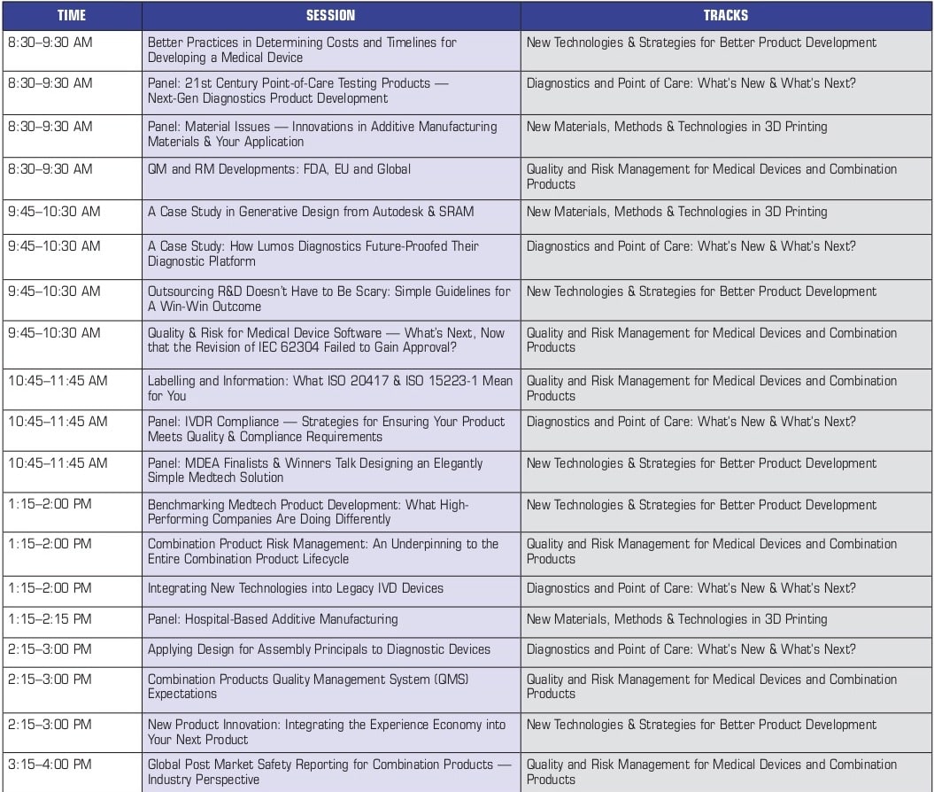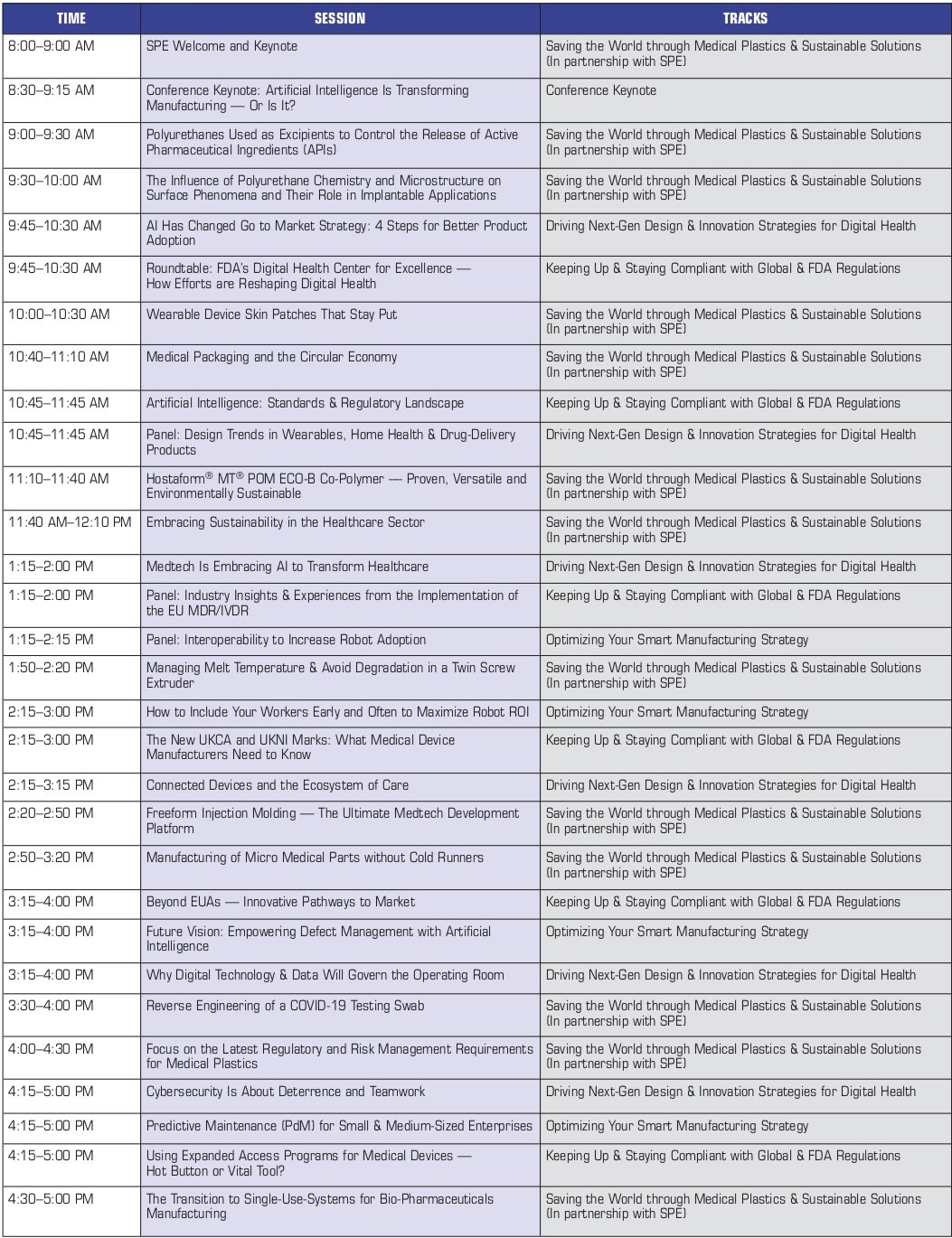 Explore eight medtech-focused tracks, and view on-demand conference content (post-event) at the event’s Design. Engineer. Build. Conference (formerly known as the MD&M West Conference).