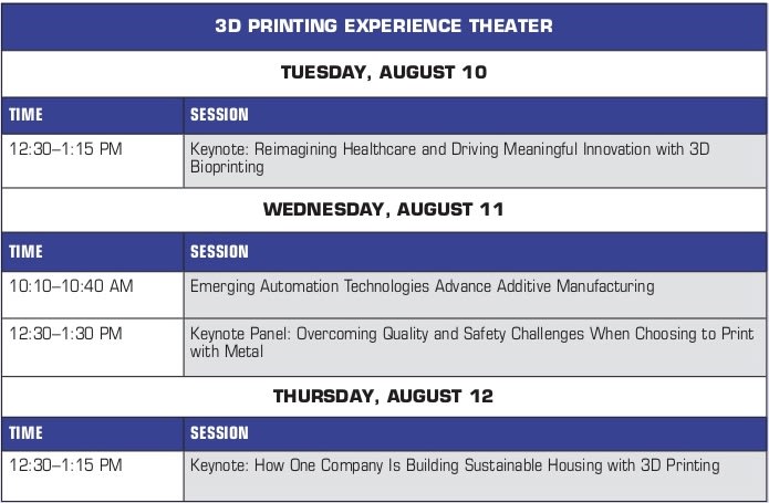 The theater features 24 live demos and free content within a dedicated 3D printing content hub.
