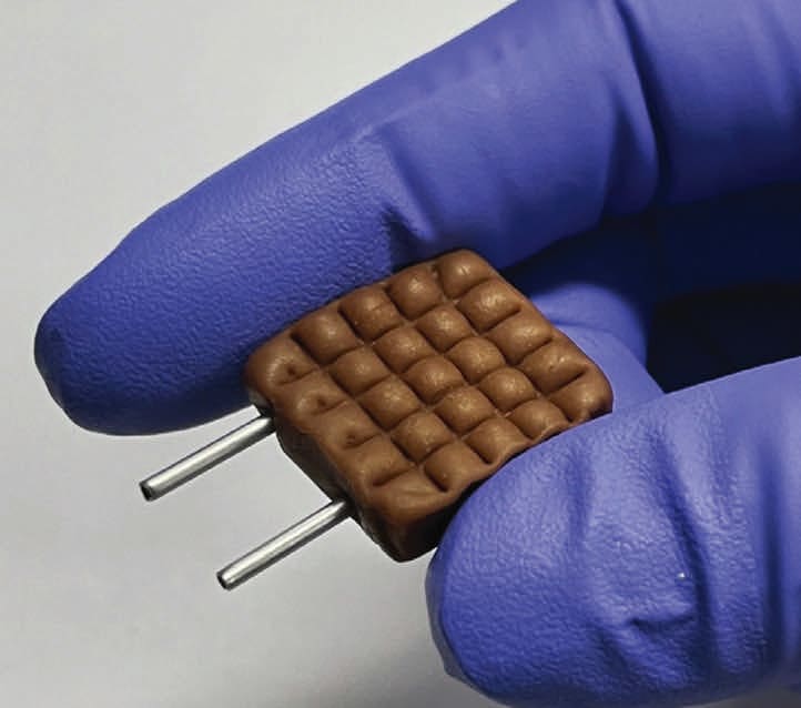 An electrode made with a molded Tootsie Roll® and aluminum tubes can help monitor ovulation status and kidney health. (Credit: Adapted from ACS Applied Materials & Interfaces 2021, DOI: 10.1021/acsami.1c11306)