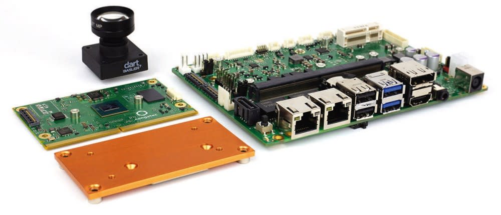 The application-specific design is ultimately implemented via the 3.5-in. carrier board. It serves as the central interface for data communication and links all the required peripherals to the module. For example, it features two MIPI CSI-2.0 interfaces for easy connection of cameras without the need for additional converter modules. The starter kit comes with the Basler dart BCON MIPI camera, but any OEM camera can be connected as long as it is compliant with MIPI CSI and is supported by the Congatec kit.
