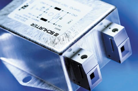 A line of filters optimized for use in DC applications is available from Schurter, Santa Rosa, CA. The DC-rated filters are particularly suitable for applications requiring increased attenuation of asymmetric disturbances. The filters have a current rating of 30 A at 80 VDC and are offered in single- and dual-polarity output circuits. The single-polarity FMEB filter is designed for a maximum operating voltage of 80 VDC, while the FMEC series offers connections for two polarities for a maximum +80 VDC. The aluminum housing is potted and has metal flanges for secure mounting to the chassis.