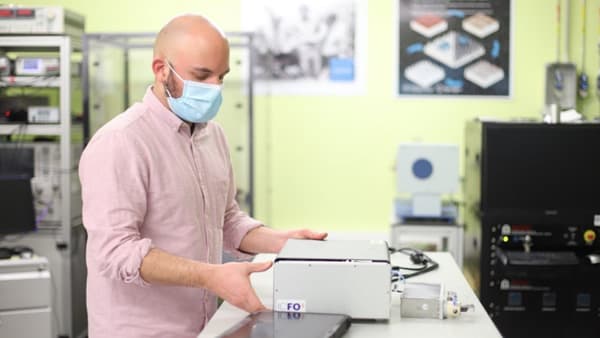 To run a test, a saliva sample is introduced in a solution that contains fluorescent antibodies that will attach to SARS-CoV-2 particles. The sample is then processed by the flow virometry reader, which uses a single microfluidic channel to pass the sample through a laser illumination and detection setup. If viral particles are present in the solution, they change the sample’s fluorescence in a detectable way, providing information that can be used to calculate the viral concentration.