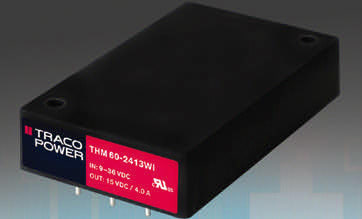 A series of DC-DC converters with ultra-wide input ranges with safety approvals for both medical and Industrial applications is available from Traco Power, San Jose, CA. The THM 60WI series is rated for applied parts with BF (body floating) applications, ensuring patient and operator protection. The series offers 9-75 or 18-75 Vin ranges with single and dual outputs of 5.1/12/15/24/±12/±15 V with up to 92 percent efficiency. All models are 2xMOPP compliant with an ISO 14971 risk management file and safety approved to IEC/EN/ES 60601-1 and IEC/ EN/UL 62368-1 standards. All models offer an MTBF of 1 million+ hours (MIL-HDBK-217F, ground benign).