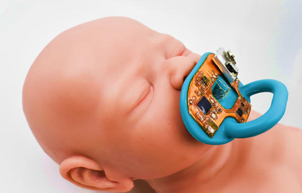 This smart pacifier can also provide more continuous monitoring of sodium and potassium ion levels. These electrolytes help alert caregivers if babies are dehydrated, a danger for infants, especially those born prematurely or with other health issues.