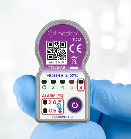 Timestrip, Cambridge, UK, has developed an electronic indicator technology suitable for pack level monitoring with both time and multiple temperature settings. The neo is a platform for a series of single-use electronic indicators that can be specified in a wide range of temperatures for both ascending and descending alerts, as well as for different durations. If any of the set conditions are breached, a system of flashing LEDs provides clear information to the user. A standard configuration is available. The design provides monitoring at three temperatures and shows the cumulative time above a specific temperature level.