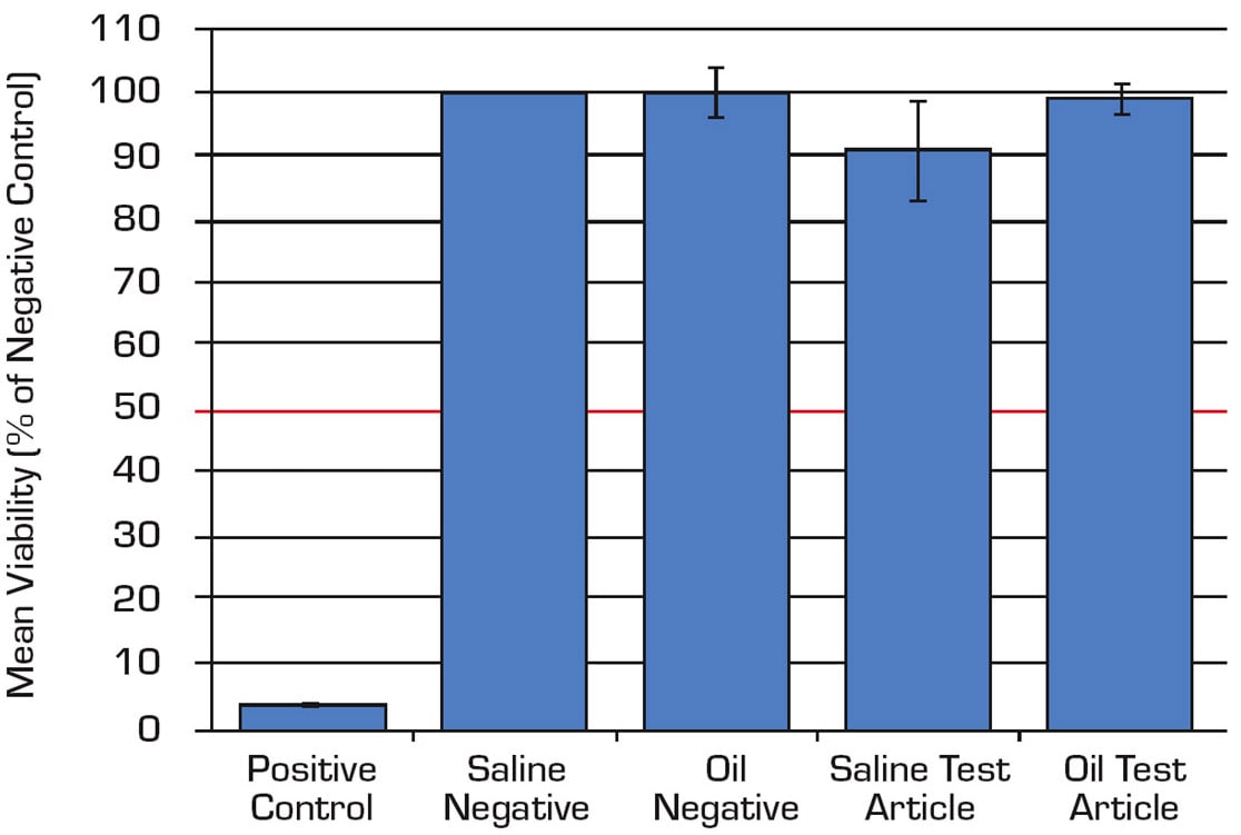 Animal tests require the ordering of animals and then acclimation to the animal facility; animal testing has built-in delays. With the RhE test, tissues are on hand when samples arrive and testing can start immediately. The tissues also have less variability between test specimens making repeatability of test results more consistent over the inherent variability of animals (see Table 1 and Figure 1).
