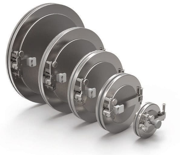 316L stainless-steel alpha flange with polypropylene or stainless-steel door.