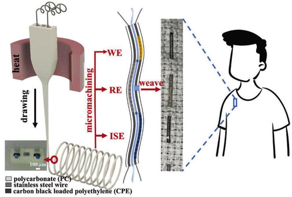 “Our breakthrough is the first successful attempt at using thermally drawn fiber in wearable bioelectronics for monitoring biochemical signatures,” says Guo.
