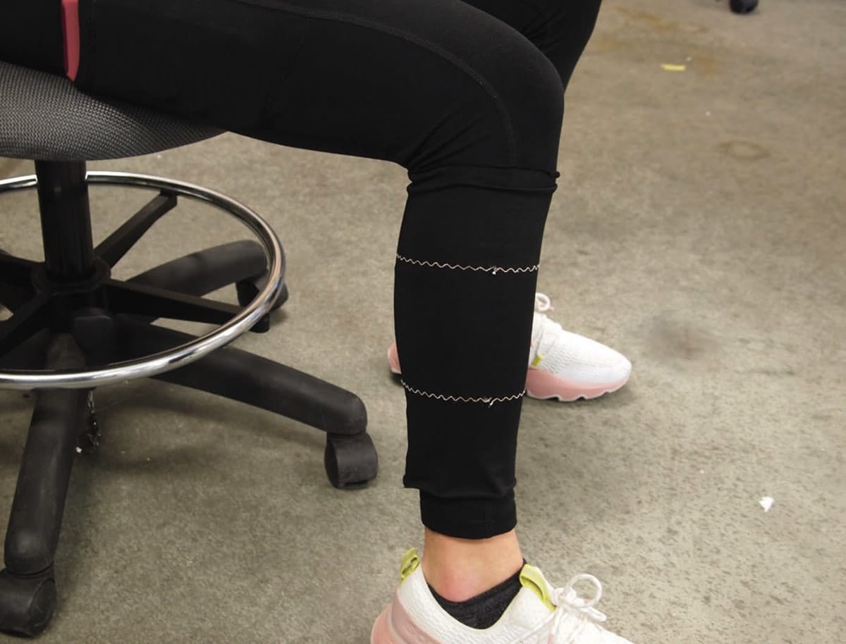 After some trial and error, they found that while sewing in a straight line would limit the sleeve’s elasticity, a zigzag pattern was ideal for amplifying it. This same novel pattern is the reason the sensor may be scalable across multiple different body parts or even several locations on the same limb.