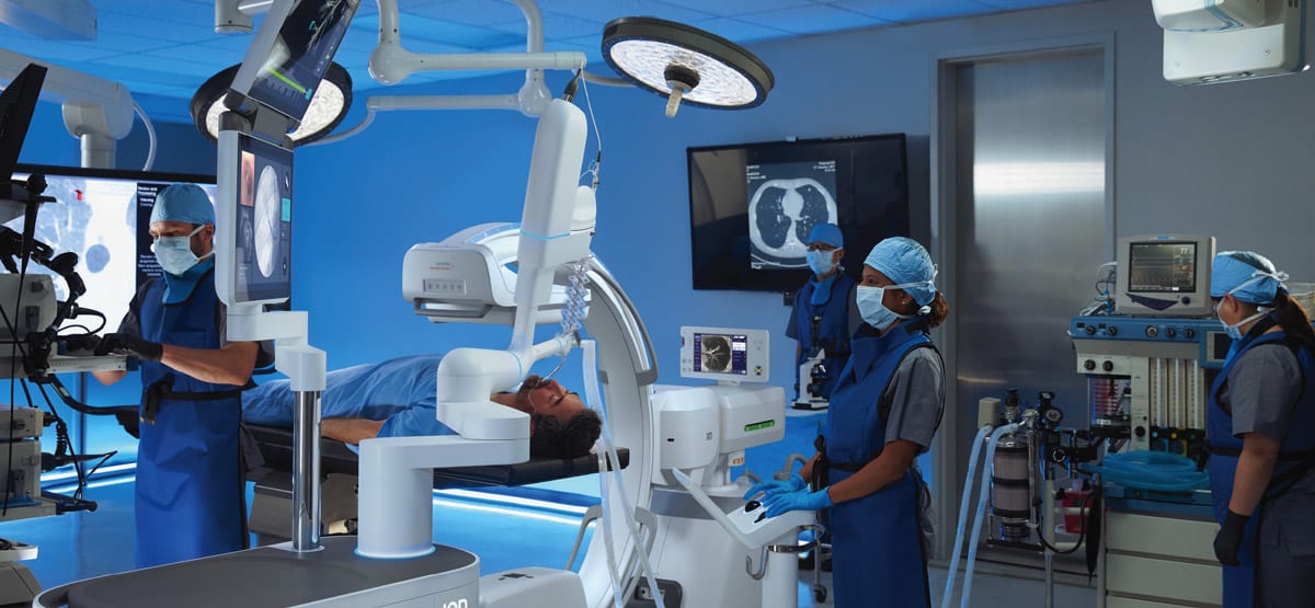The ceiling-mounted Artis combines mechanical flexibility with high positioning accuracy and intelligent workflows. 3D images can be acquired in as little as two-and-a-half seconds, thereby reducing motion artifacts.