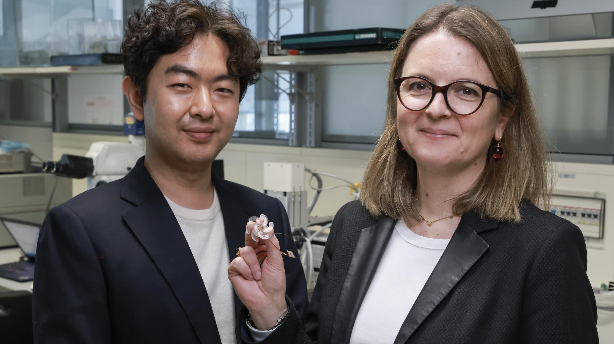 Thanks to an everting actuation mechanism inspired from soft robotics, each spiraled arm is gently deployed one at a time over sensitive brain tissue. (Image credit: EPFL/Alain Herzog.)