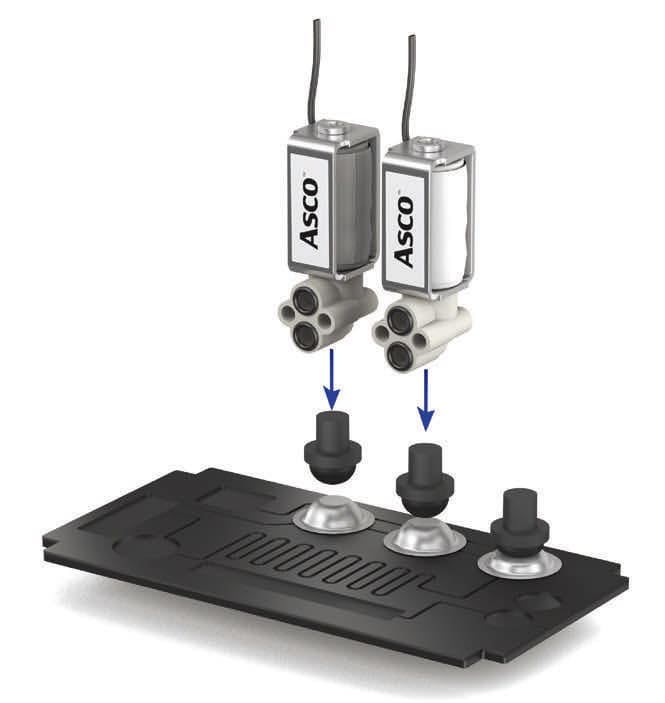 As clinical diagnostic instruments get smaller and closer to the patient, new designs are increasingly moving away from traditional fluidic systems and toward utilizing microfluidics. To ensure that assays are conducted properly (without the presence of highly trained lab personnel), these designs often rely upon single-use microfluidic cartridges that are preloaded with the reagents needed to perform the assay. In POCT systems with this type of fluidic design, general-service (air) valves can be used to pilot or drive the mechanism that generates the movement of fluids (reagents, samples, etc.) within the cartridge and the POCT system in the proper sequence. Among the key features to consider in a general-service valve for POCT applications are 1) ensuring a high size-to-flow ratio, 2) minimizing weight, 3) high cycle life, and 4) low power consumption.