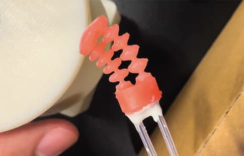 The team developed a hand dial that allows for precise adjustments of the tip’s position, providing more control than rotating a pre-bent tip. Additionally, the dial offers haptic feedback that indicates when the tip is bent. With this system, the researchers grant the ability to simultaneously move a catheter forward with one hand while adjusting the angle of the tip with the other. (Image credit: Noah Barnes, PhD Student, department of mechanical engineering, Johns Hopkins University)