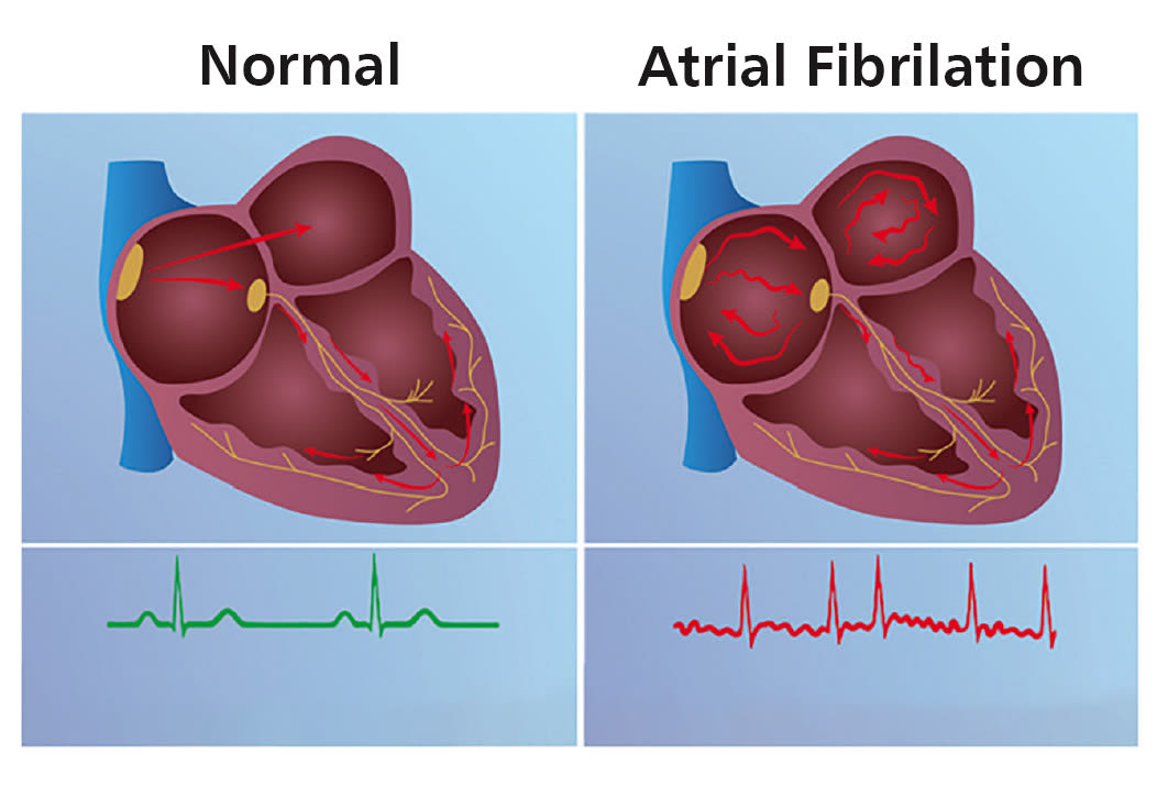 One in 10 adults over age 65 suffers from atrial fibrillation, a type of heart arrhythmia in which errant conduction pathways within the heart’s signaling system allow certain chamber(s) of the heart to beat erratically. Figure 1 illustrates the general condition. These erratic beats lead to inefficient pumping, pooling of blood, and the potential for stagnant blood to form clots. If these clots leave the heart, they can cause a stroke. Thus, correction of the arrhythmia is often undertaken as an elective, prophylactic procedure.
