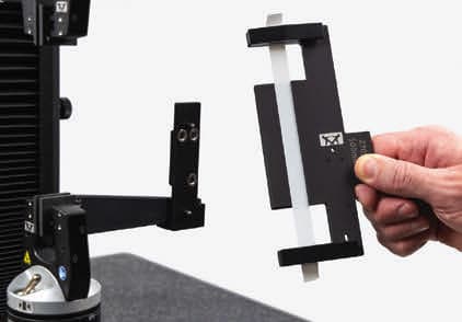 Instron, Norwood, MA has released a precision specimen loader for performing mechanical testing on thin film and foil specimens that is designed to address the unique challenges associated with handling delicate specimens. The loader consists of three parts: a width block that ensures your specimen lines up with the center of the jaw faces, a linear rail, and the alignment clip. The alignment clip is detachable and can be loaded on a workbench. Once loaded with a specimen, it snaps onto the linear rail with pins and magnets, which guides the specimen into the test space and helps ensure consistent and reliable test results.