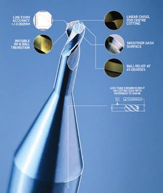 A precision grinder from ANCA, Melbourne, Australia, is designed for producing tools such as ballnose, corner radius endmills, and complex or intricate profile tools. The FX7 ULTRA includes a one-nanometer control system, a servo control algorithm for smooth motion, system and mechanical upgrades to enhance stiffness and rigidity, and in-process measuring, balancing, and runout compensation for consistent accuracy. The unit, which can grind down to a size as small as 0.1 mm, includes the company’s patented Motor Temperature Control. The nanometer control enables micro-adjustments for smoother axis movement, resulting in optimal tool geometry.