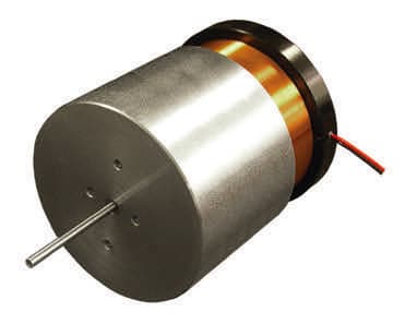 A linear servo motor from Moticont, Van Nuys, CA, combines high precision and high force in an easily integrated package. The GVCM-095-064-01 linear voice coil servo actuator, also called a moving coil motor, features zero cogging, high speed, high acceleration/deceleration, and high precision accuracy and repeatability when operated in a closed servo loop. The precision ground 0.1572 ± 0.0003 in. (3.993 ± 0.008 mm) diameter shaft guided by a linear bearing in the extended position is 2.500 in. (63.5 mm) long. It can tolerate a side load to 2 lbs. (9.0 N) and has 1.500 in. (38.1 mm) of travel with a high-force-to-size ratio of 24.4 lbs. (108.6 N) of continuous force and 77.1 lbs. (343 N) of peak force at a 10% duty cycle.
