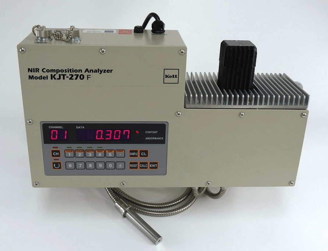 One example is Kett’s KB30 in-line NIR moisture meter system. With a response time of 0.2 seconds, ±0.01 percent accuracy, and a moisture measurement range of 0.00–100.0 percent, the device can be used to assess extremely variable and rapidly changing products, as well as processes where quality is critical. The quick response time enables faster production line rates with superior moisture measurement. It has been used in various industrial production lines to test pharmaceuticals, chemicals, foods, textiles, minerals, lubricants, pulp/paper goods, and personal care products.