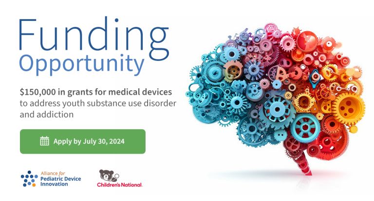 The (APDI), a nonprofit consortium led by Children’s National Hospital and funded through the Food and Drug Administration (FDA), has announced a grant opportunity for pediatric medical devices that improve the monitoring, diagnosis or treatment of youth suffering from substance use disorder and addiction. Grants up to $50,000 each are available for pediatric-specific solutions selected by a panel of experts from submitted proposals. Up to $150,000 in grant funds are available for distribution through this program.