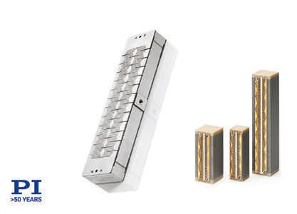 PI, Auburn, MA, offers high-speed actuators for micro- and nanodispensing applications. Both standard and custom-designed actuators are available. All actuators are based on PI’s in-house manufactured PICMA® piezoceramic drives. The actuators are available as bare piezo stacks and in highly customized forms with motion amplifiers and integrated sensors. Standard stacks provide a travel range of 30μm, and motion-amplified actuators can reach hundreds of microns while still providing sub-millisecond responsiveness.