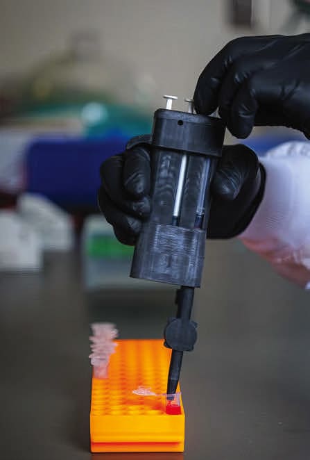 The fNACPs (essentially cellsized rubber balls) can be customized with functional coatings so they recognize and capture a designated biomarker of interest, such as an infectious virus or a protein deemed a red flag for a brewing health problem. The particles also respond to the pressure from sound waves differently than blood cells. The acoustic pipette harnesses this unique response.