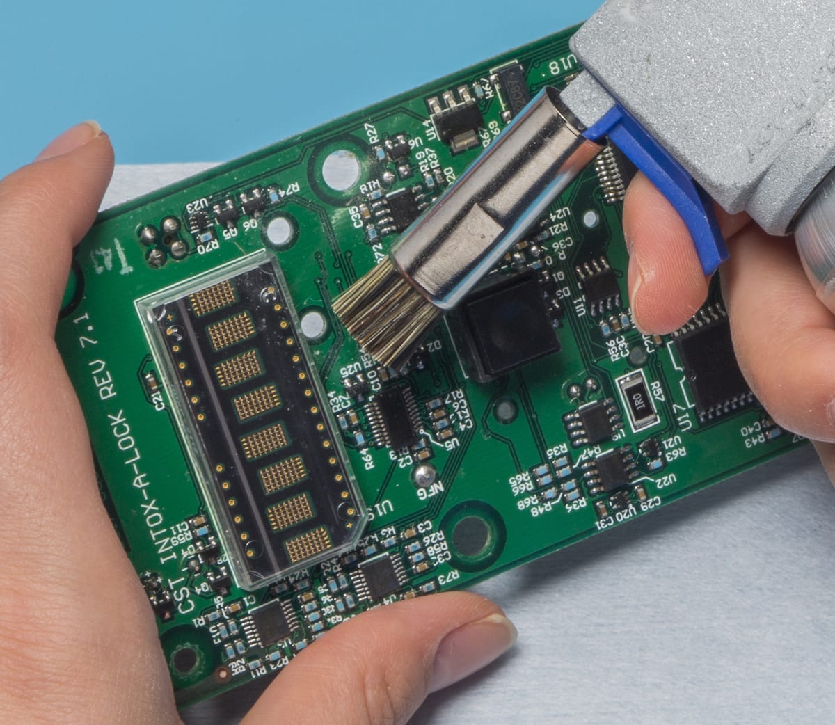 Manual Cleaning. This method uses degreasers or flux removers applied with wipes, brushes, or swabs. It’s particularly effective for small production batches or intricate components. Skilled technicians can target hard-to-reach areas and inspect devices in real time, ensuring thorough cleaning. Manual cleaning also allows for greater flexibility in addressing complex shapes and delicate parts, as technicians can adjust techniques based on specific device requirements. However, precision is needed to prevent surface damage or incomplete residue removal, and it is also very reliant on the technician’s skill.
