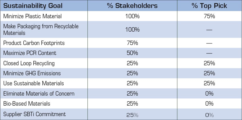 Minimize Plastic Material Usage. The top sustainable packaging goal identified in our study of healthcare organizations was to “Minimize Plastic Material Usage.” All the organizations we interviewed cited this goal as an objective they are working toward, and 75 percent listed it as a top pick. Reducing material is not only beneficial for the environmental impact of packaging, but it also lowers packaging component costs. Consumer product groups (CPGs) have been reducing packaging weight for decades, 3 but this concept is relatively new for healthcare organizations accustomed to over-designing packaging to eradicate risk. The confluence of sustainability benefits and cost-saving potential leads to this goal becoming a top priority in healthcare. “We can create real value for the company through environmental sustainability,” stated a packaging leader in the space.