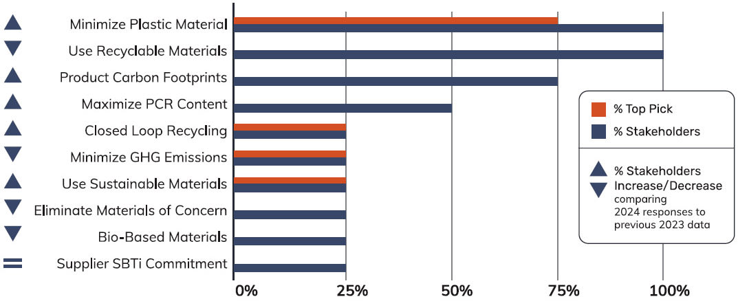 Legislation plays a crucial role in driving change, with many stakeholders pointing to the European Packaging and Packaging Waste Regulation (PPWR) 2 as a key influence on their sustainability efforts. Set to be legally adopted by the end of 2024, the PPWR aims to minimize packaging waste and encourage a circular economy. Product-sensitive products like medical devices and pharmaceuticals are exempt from the PPWR recycling and post-consumer recycle (PCR) requirements for now, but secondary packaging items are not exempt. The clause will be reevaluated in 2035 to determine inclusion of contact sensitive packaging.