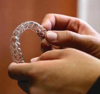 The material isn’t a hard plastic, so if you take it out and put it in hot water it will shrink and soften up, and that will make it easy to put back in your mouth. Then the mouth temperature will harden it back to its original shape and move the teeth accordingly. To make a thermoplastic aligner, a patient’s mouth is scanned, and a dental mold is created, as with other plastic aligners. But instead of sending the scan out to a company that will manufacture the aligner, orthodontists using the 3D printer can immediately make aligners onsite in their dental practices.