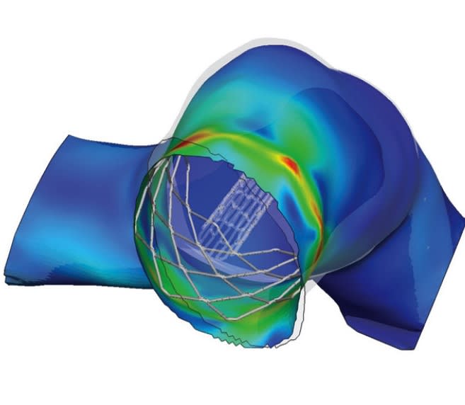 Magnetic resonance (MR) and computerized tomography (CT) images of the patient’s heart are the input data to study cardiac structures because they provide a reliable representation of the patient anatomy and dynamics. This information can be translated in computer models (finite element method) that allow for a virtual simulation of the procedure (Figure 2). The results of the computer analysis give indications on the implant performances across a variety of anatomical settings, and guide the optimization process towards a robust final device design.