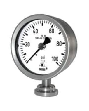The M93X.25 sanitary gauge from WIKA Instrument Corp. (Lawrenceville, GA) is an external, flush diaphragm with a Tri-Clamp® connection. It requires hydraulic fluid to transmit pressure to the instrument. The unit is autoclavable when a polysulfone window is specified. Features include 1500 psi maximum pressure range, ambient operating temperature of -20 to 60°C, a white aluminum dial with black lettering, 316L stainless steel electropolished wetted parts, and a polished stainless steel case with vent plug and stainless steel polished ring.