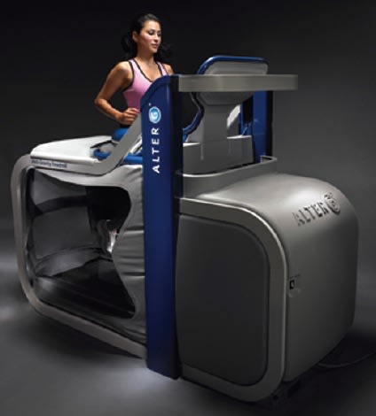 After patenting his gravity differential technology in 1992, Whalen licensed his patent in 2005 to a private company to help rehabilitate patients needing support as they learned (or re-learned) to stand, walk, and run. Based in Menlo Park, CA, Alter-G Inc. ( www.alter-g.com ) adapted the technology for athletic and medical uses here on Earth in the form of a specialized treadmill called the GTrainer. This rehabilitation device applies air pressure to a patient’s lower body in order to unload weight, which reduces the stress placed on the lower body during rehabilitation.