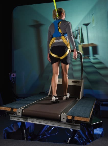 Another rehabilitation system originally developed for astronauts is the Adaptability Training System, developed by the National Space Biomedical Research Institute (NSBRI) and NASA. The system consists of a treadmill mounted on a base that can be actively moved in different directions, paired with a virtual scene projected in front of the subject providing a variety of balance challenges as the user walks. This concept will also have benefits for people with balance disorders.