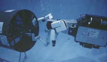 The Space Systems Laboratory (SSL), focusing on space robotics, artificial intelligence, and space simulation, was originally founded at Boston’s Massachusetts Institute of Technology (MIT) in 1976. The lab conducted experiments on large-scale space structure assemblies and telerobotics using Marshall Space Flight Center’s Neutral Buoyancy Simulator, a water tank used to mimic conditions in space. Along with Marshall, SSL spearheaded the 1985 Experimental Assembly of Structures in Extravehicular Activities (EASE) experiment, which studied astronaut proficiency in assembling structures during spacewalks, as well as possible building and maintenance techniques. The success of the EASE experiment boosted interest in telerobotic applications for construction in space. In 1990, SSL moved to the University of Maryland, College Park, where it built a Neutral Buoyancy Research Facility — a 50-foot-diameter, 25-foot-deep water tank that became the site of one of the Space Telerobotics Program’s major projects: the Ranger Telerobotic Flight Experiment.